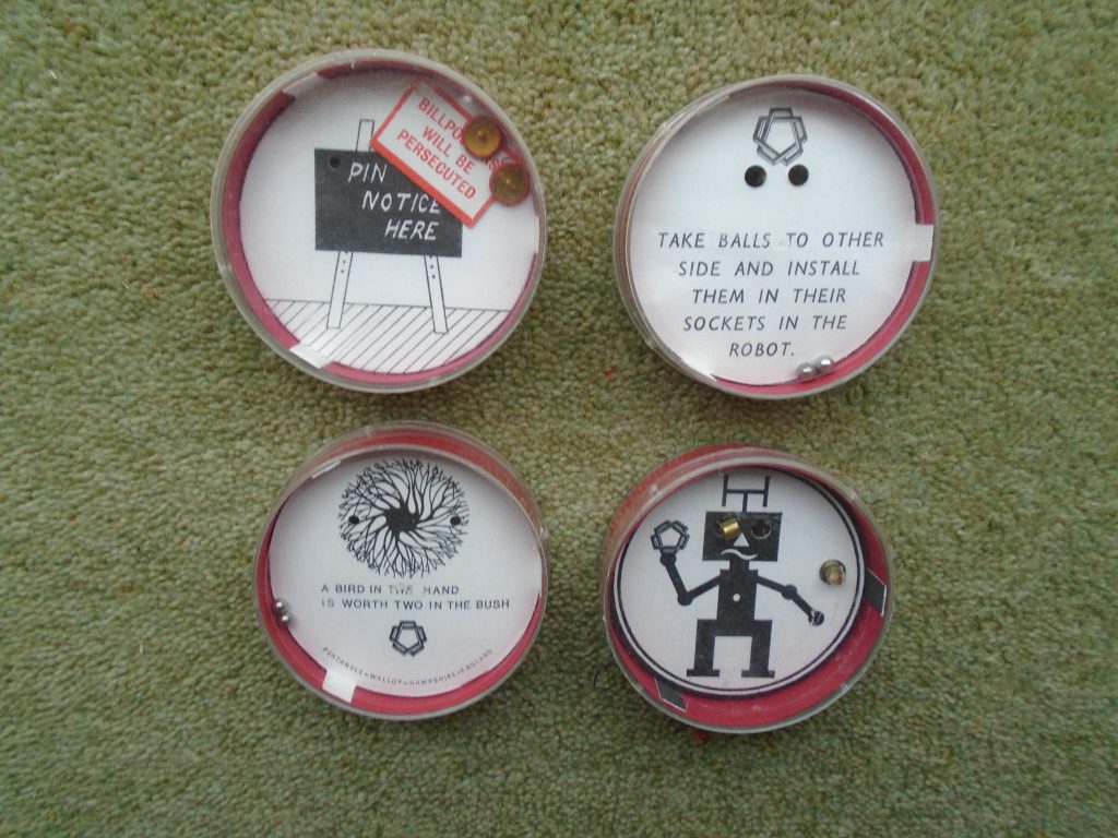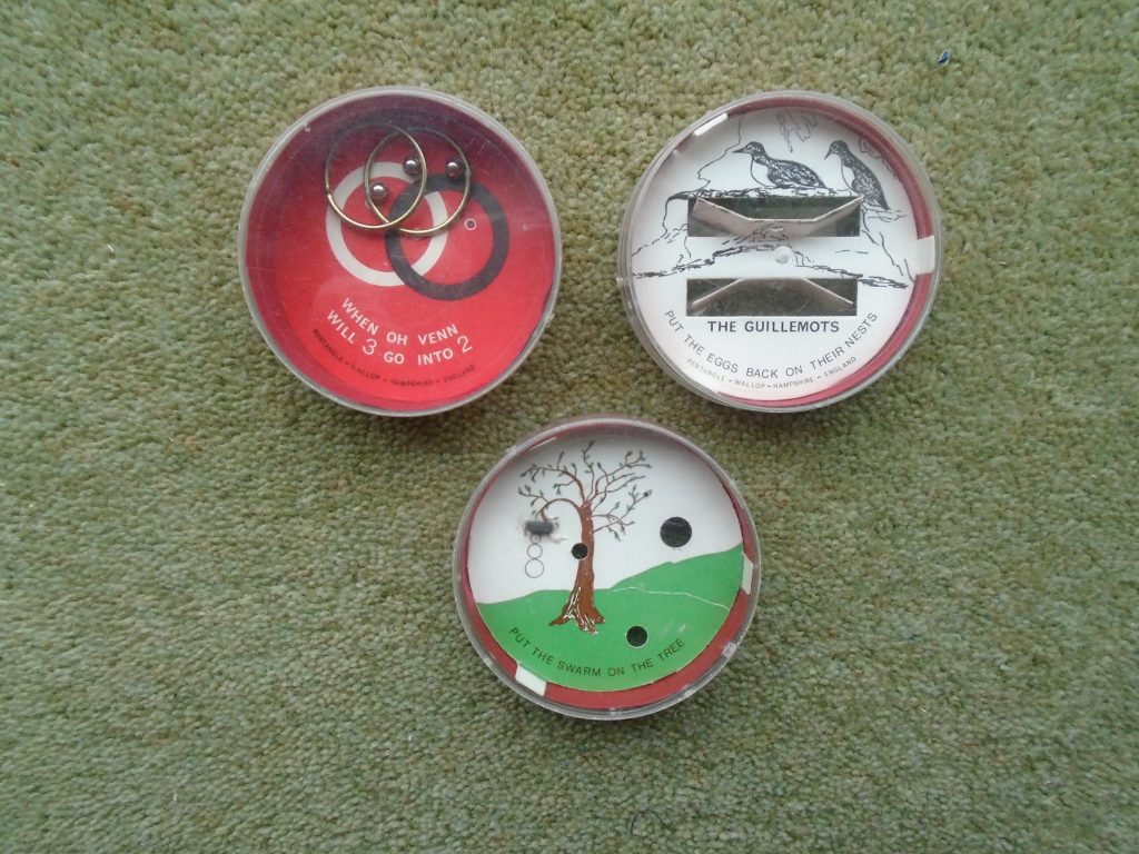 A collection of sliding piece puzzles. Goal Fairly rare Value £7