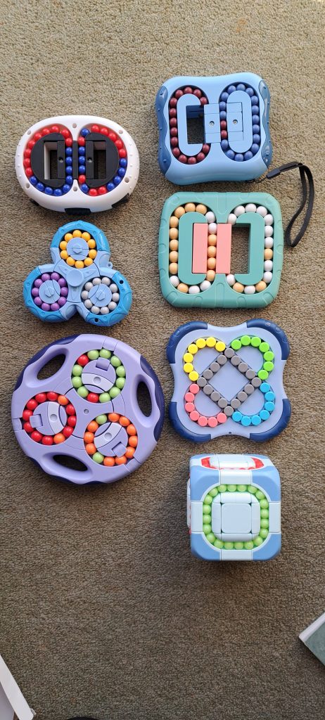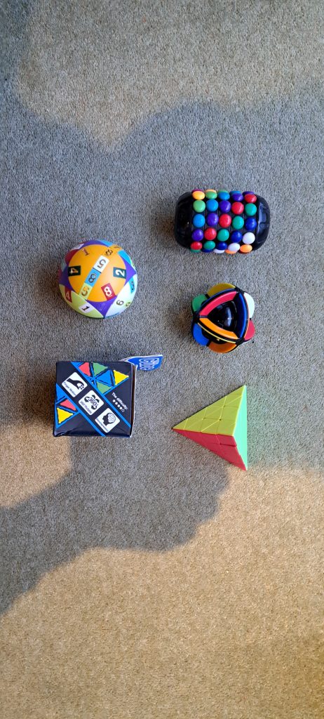 This shows the collection of magic bean puzzles. The cube looks impossible. I will never attempt to move it more than 1 move.